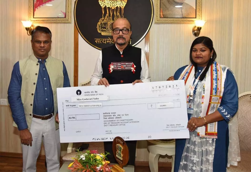 रायपुर। छत्तीसगढ़ में तकनीकी नवाचार और महिला सशक्तिकरण की एक प्रेरणादायक मिसाल पेश करने वाली ड्रोन दीदी गोदावरी साहू को राज्यपाल रमेन डेका ने सम्मानित किया। मुंगेली जिले के नगर पंचायत सरगांव की निवासी गोदावरी साहू को स्मृति चिन्ह प्रदान करने के साथ-साथ 10 हजार रुपये की प्रोत्साहन राशि भी दी गई। इस अवसर पर राज्यपाल के सचिव डॉ. सी.आर. प्रसन्ना भी उपस्थित रहे। गोदावरी साहू “नमो ड्रोन दीदी” के रूप में कार्यरत हैं