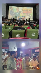 नगर के विमलश्री टाकीज में आयोजित संगीत संध्या कार्यक्रम में गणमान्य अतिथियों सहित काफ़ी संख्या श्रोतागण उपास्थित हुये। आयोजन के सर्वप्रथम अतिथियों द्वारा माँ सरस्वती व मूर्धन्य गायकों की प्रतिमाओं के समक्ष दीप प्रज्वलन कर कार्यक्रम का शुभारम्भ किया गया।