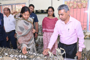 रायपुर, 02 अगस्त 2025 – महिला एवं बाल विकास और समाज कल्याण मंत्री श्रीमती लक्ष्मी राजवाड़े आज कोंडागांव जिले के प्रवास पर रहीं। उन्होंने जिले में स्थित शबरी एंपोरियम में बेलमेटल कला की कलाकृतियों का अवलोकन किया और प्रसिद्ध शिल्पकार डॉ. जयदेव बघेल के पुत्र श्री भूपेंद्र बघेल से भेंट कर शिल्प प्रक्रिया की जानकारी प्राप्त की। इसके साथ ही नारियल विकास बोर्ड के कार्यालय पहुंचकर नारियल, कोको और काली मिर्च के उत्पादन की जानकारी ली।