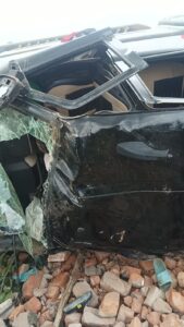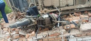 अनियंत्रित स्कॉर्पियो पलटकर निर्माणाधीन मकान से टकराई