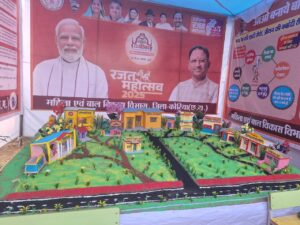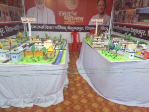 पंचायत एवं ग्रामीण विकास विभाग द्वारा प्रधानमंत्री आवास, सोलर पैनल और स्वच्छता के मॉडल को बेहद ही खूबसूरती से तराशा गया है।