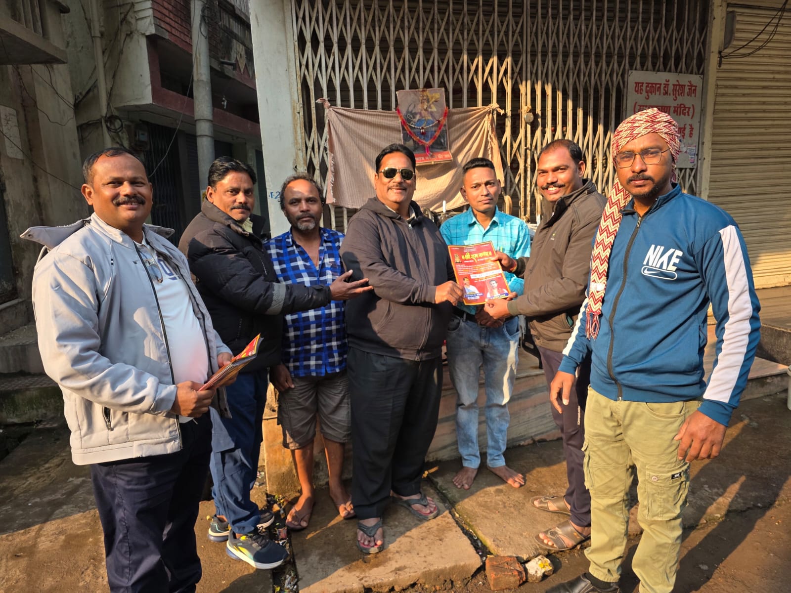 धमतरी- गौशाला मैदान में आगामी 23 दिसंबर से धर्म प्रेमी समाजसेवी पंडित राजेश शर्मा द्वाराआयोजित होने वाली श्रीराम कथा के भव्य आयोजन के प्रचार-प्रसार हेतु आज अल सुबह नगर निगम के पार्षद गणो द्वारा नगर भ्रमण करते हुए शहर के प्रमुख सार्वजनिक जगहों पर मॉर्निंग वॉक करने वाले लोगों को राम कथा में सम्मिलित होने का आग्रह पूर्वक निवेदन कर आमंत्रण पत्र प्रदान किया। नगरवासियों को बताया गया कि या हम सबके लिए परम सौभाग्य का विषय है कि राष्ट्रीय स्तर पर राम कथा के श्रवण को मध्य मानकर विशेष ख्याति अर्जित करने वाले प्रसिद्ध कथा वाचक पं. अतुल कृष्ण जी भारद्वाज के श्रीमुख से मर्यादा पुरुषोत्तम प्रभु श्री राम जी के जीवन चरित्र का वाचन होगा, जिसका लाभ संपूर्ण क्षेत्रवासियो प्राप्त कर अपने जीवन को धन्य बनाएंगे। राम कथा के क्रम में ही 30 दिसंबर को अंतरराष्ट्रीय कवित्री अनामिका अंबर की शिव मधुर वाणी से भगवान राम के जीवन चरित्र को काव्य के माध्यम से आम जनमानस तक पहुंचाने के लिए संगीत में प्रस्तुति का भी प्रस्तुतीकरण किया जाएगा जो शहर ही नहीं बल्कि क्षेत्र में अपने आप में अलग ही आयोजन होगा जिसके लिए आयोजन समिति द्वारा व्यापक तैयारियां भी की जा रही है।आज के आमंत्रित करने क्षेत्र में विंध्यवासिनी वार्ड के आसपास प्रीति स्वीट मार्ट, लक्ष्मी ज्वेलर्स, रामबाग, सदर बाजार,बिलाई माता सहित विभिन्न जगहों पर आमंत्रण पत्र वितरित किए या। उक्त वितरण के अवसर पर वार्ड पार्षद अखिलेश सोनकर, पार्षद कुलेश सोनी पार्षद नंदू लोधी एवं वरिष्ठ नेता भागवत यादव शामिल रहे।