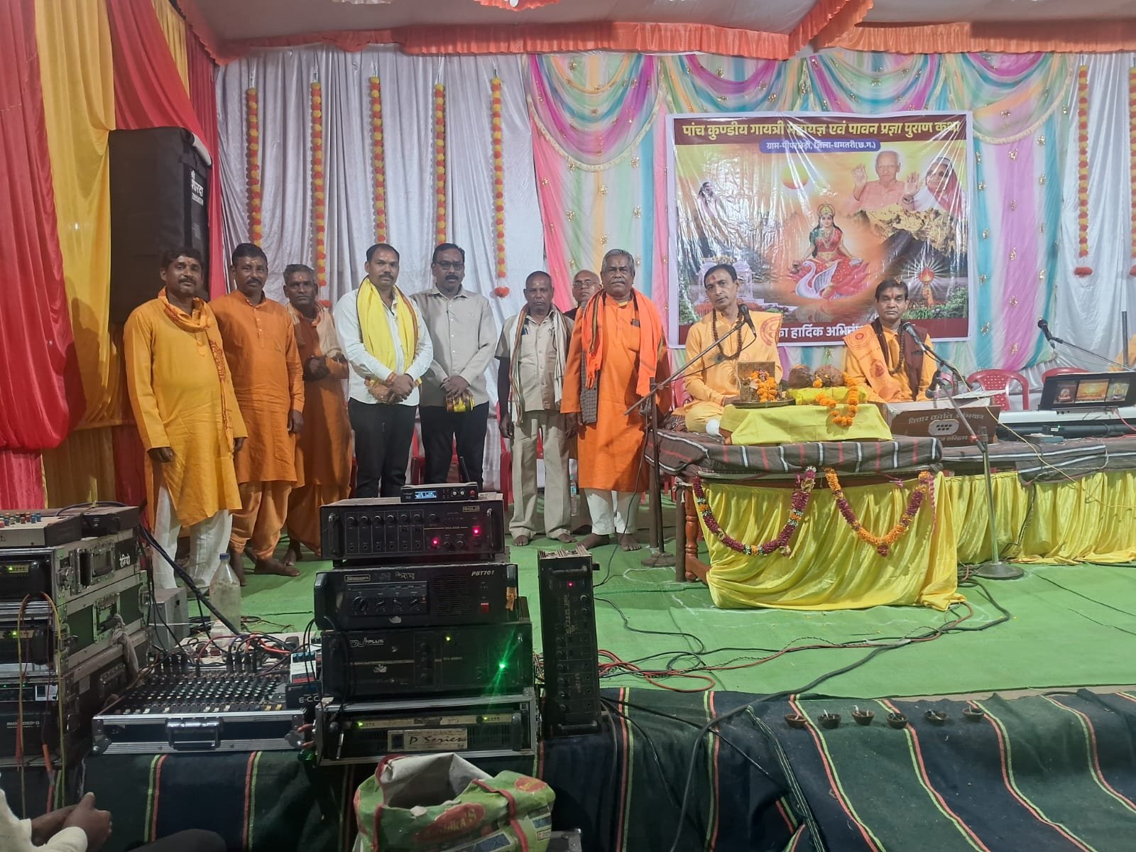 मंत्रोच्चारण से व्यक्ति के जीवन में होता है सकारात्मक ऊर्जा का संचार -: कुलेश सोनी भारत की आत्मा है हिन्दुत्व एवं आध्यात्म -: पिन्टू यादव धमतरी-: पीपर छेड़ी गांव में प्रज्ञा मानस परिवार द्वारा तीन दिवसीय पांच कुंडीय गायत्री महायज्ञ एवं पवित्र प्रज्ञा पुराण कथा का आयोजन समाज के सुख, शांति एवं समृद्धि के लिए की जा रही है, जिसमें धर्म प्रेमी समाजसेवी पंडित राजेश शर्मा के प्रतिनिधि के रूप में सम्मिलित होते हुए निगम के पार्षदद्व्य कुलेश सोनी एवं पिंटू यादव ने आहुति करते हुए आयोजन समिति को इस भव्य एवं दिव्य आयोजन के लिए बधाई के साथ शुभकामनाएं दी । ग़ौरतलब है कि उक्त धार्मिक अनुष्ठान में यज्ञाचार्य ओम प्रकाश द्वारा मंत्र उच्चारण के बीच प्रज्ञा पुराण पर प्रवचन करते हुए अनुष्ठान संपन्न कराया जा रहा है।इस अवसर पर उपस्थित जनों को संबोधित करते हुए कुलेश सोनी ने कहा कि धार्मिक एवं सांस्कृतिक कार्य से ही लोगों को आत्मिक संतुष्टि एवं शांति प्राप्त होती है यज्ञ के साथ ही साथ मंत्र चरण की प्रति ध्वनि वायुमंडल से सकारात्मक ऊर्जा व्यक्ति के जीवन में देते हुए सर्वत्र आपसी प्रेम भाईचारा का निर्माण करती है जो वर्तमान समय की महती आवश्यकता है। वहीं पिंटू यादव ने कहा कि भारत की प्राण है हिंदुत्व एवं आध्यात्म इसलिए गांव-गांव में ऐसे आयोजन को करने के लिए सभी को बड़े-बड़े चढ़कर अपना योगदान देने सामने आना चाहिए यही मानव जीवन की सार्थकता भी है। उपरोक्त जानकारी आयोजन समिति से जुड़े हुए प्रमुख श्रीमती केकती साहू द्वारा दी गई। उक्त आयोजन में महत्वपूर्ण भूमिका निभाने वालों में जीवन सोनवानी, चंद्रहास साहू, शांतिलाल साहू ,हसदेव साहू ,भीम साहू ,श्याम सुंदर साहू जितेंद्र तथा पवन शामिल है।