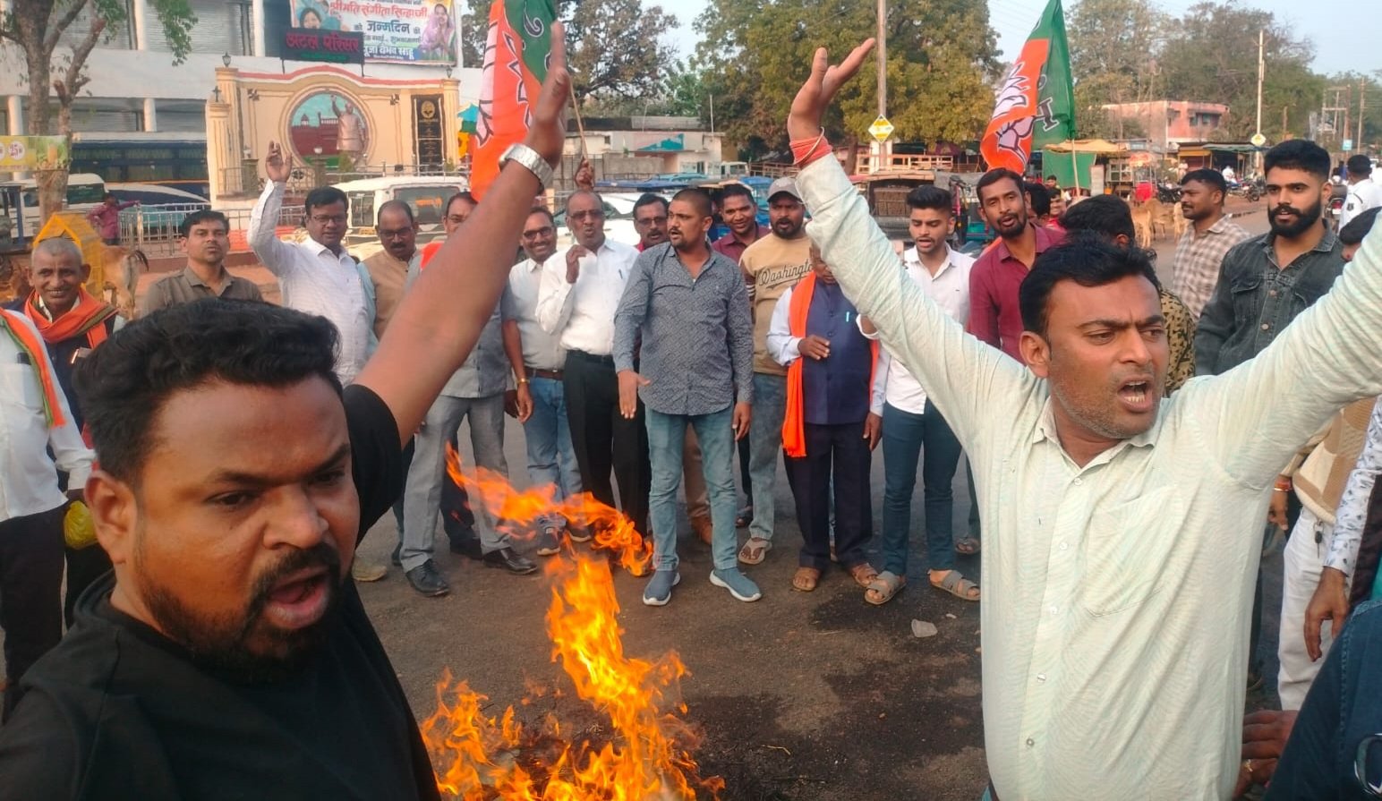 पुतला दहन के दौरान ,