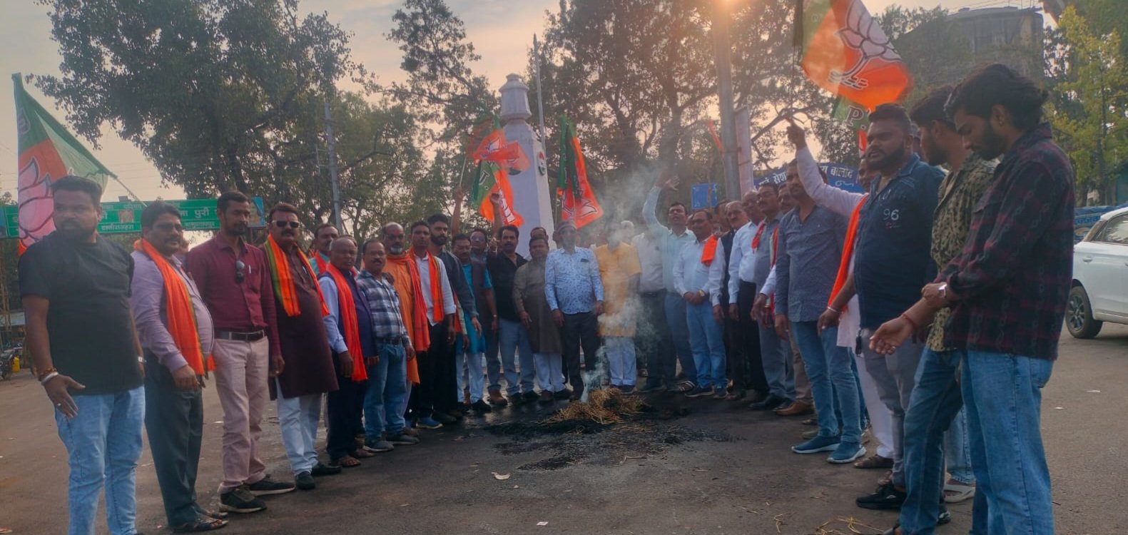 स्थानीय जय स्तंभ चौक में भाजपा किसान मोर्चा के नेतृत्व में एकत्र भाजपा कार्यकर्ताओं ने कांग्रेस नेता राहुल गाँधी का पुतला दहन किया और जोरदार नारेबाजी कर विरोध और रोष जताया।