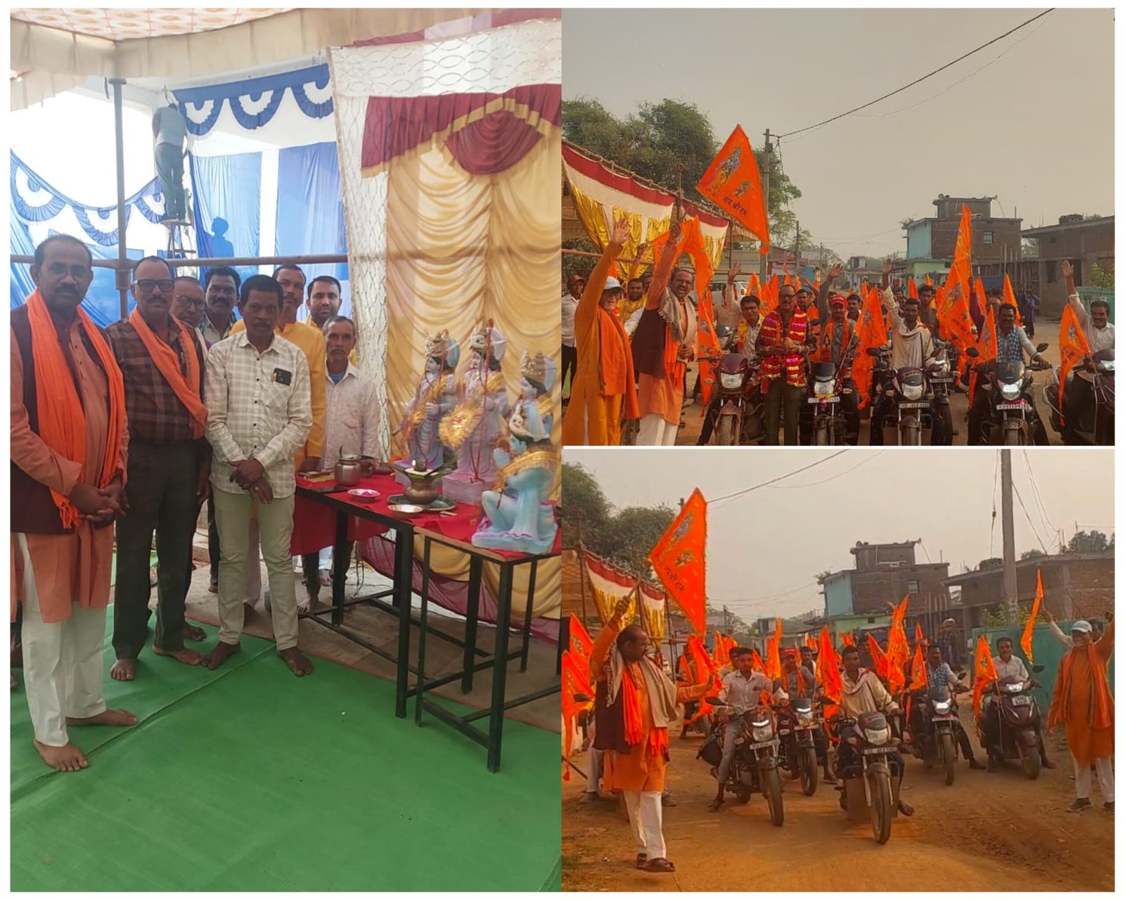 छत्तीसगढ़ सोनकर समाज के द्वारा प्रति वर्ष कि भांति इस वर्ष भी मौखला मांझी देव स्थल से श्री राम यात्रा निकाली, जो आसपास के देव स्थल को भ्रमण कर ग्राम भरारी मे भगवान राम कि कलश यात्रा शोभायात्रा रामायण पाठ भोजन भंडारा कर सम्पन्न होगा श्री राम बाइक यात्रा को भगवा ध्वज दिखा कर भाजपा के पूर्व जिला महामंत्री दया राम साहू , और सारंगपुरी के सरपंच रामकुमार यादव ने रवाना किया राम नवमी और भगवान राम कि जयंती कि बधाई देते हुए साहू कहा कि वैश्विक स्तर पर जहाँ कई देशो पर मार कांट मचा है वैसे मे भारत शांति के राह मे है , अयोध्या मे भगवान राम कि भब्य मंदिर मे राम लला कि मनोहारी मूर्ति स्थापना इस सदी कि सबसे बड़ी अद्वितीय , अलौकिक वैश्विक धार्मिक घटना है, भगवान राम कृपालु है, दयालु है उनके स्मरण, मात्र से मनुष्यो का कष्ट निवारण होता है , उनकी आशीर्वाद सर्वस्त्र बरसती है राम नाम का पाठ घर घर मे करे यही से सुख शांति समृद्धि, का मार्ग प्रशस्त होगा इस अवसर पर सोनकर समाज के अध्यक्ष मनोहर सोनकर ग्राम के वरिष्ठ अर्जुन सोनकर कोतवाल रामेस्वर मिथलेश तुला राम सोनकर लिलेश्वर सोनकर रामनारायण सोनकर खुमान वेदराम भूषण सोनकर कमलेश खेम राम चिंताराम नंदकुमार धनसिंग आनंद संतोष एवं बहुत सारे सोनकर समाज के ग्रामीण पदाधिकारी उपस्थित रहे