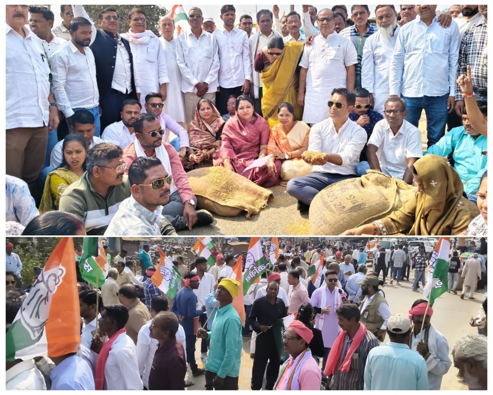 धान खरीदी मामले में कांग्रेस का चक्का जाम, संबलपुर नेशनल हाईवे में जूटे कांग्रेसी