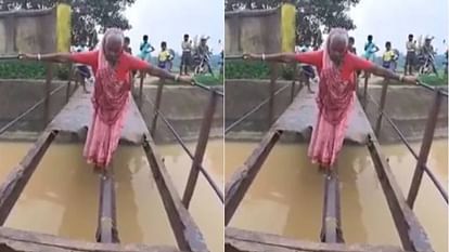 जान जोखिम में डालकर बूढ़ी दादी ने पार किया नदी का टूटा पुल, वीडियो देख DM ने दिया मरम्मत का ऑर्डर