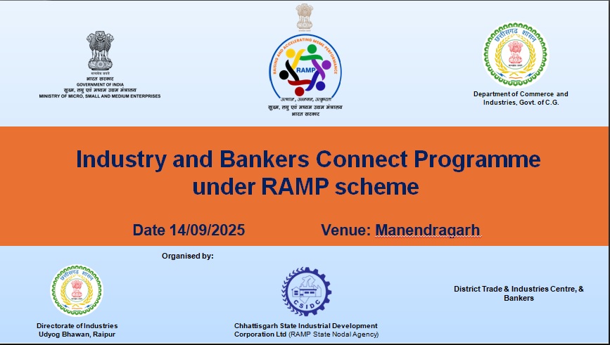 मनेन्द्रगढ़ में 14 सितंबर को होगा “उद्योग-बैंकर्स संवाद” कार्यशाला का आयोजन, क्रेडिट लिंक्ड योजनाओं पर होगी चर्चा।