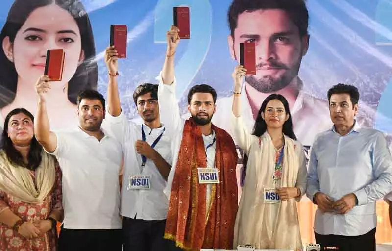 एनएसयूआई ने डीयू प्रशासन पर सीएम के इशारे पर उत्पीड़न का आरोप लगाया ।