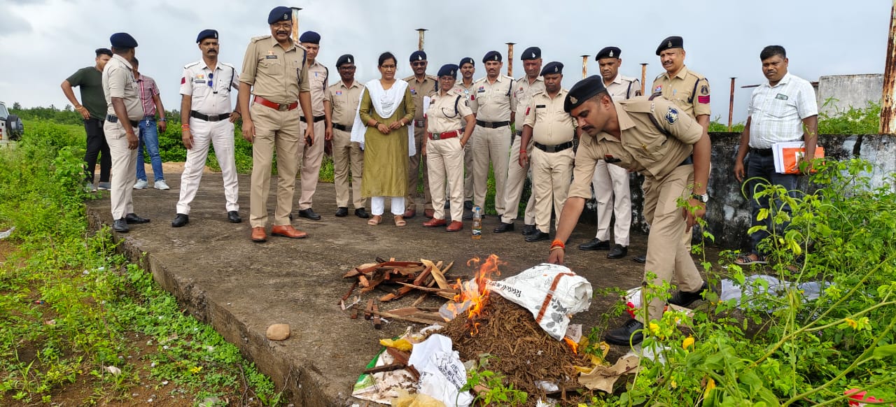 पुलिस अधीक्षक की मौजूदगी में 7 किलो गांजा एवं 131 नग नशीले इंजेक्शन का किया गया नष्टीकरण।